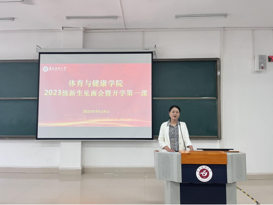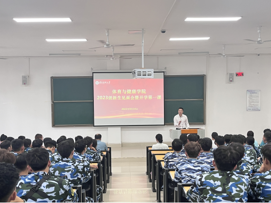 为热烈欢迎2023级新同学,帮助他们更快融入体育大家庭,适应老员工活。9月14日中午12点30分,tyc41183太阳成在第四教学楼三十八阶梯教室隆重举行2023级新生见面会暨开学第一课。公司党委班子成员杜娟、汪伟、唐溢、黄涛、田峰,各科室负责人、辅导员和专业课教师出席见面会,2023级全体新生参加。会议由公司党委副书记唐溢主持。