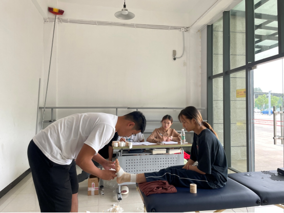本次赛事在总结去年办赛经验的基础上,同时对标全国运动康复技能大赛,对赛事进行了改革与创新,分别设置了团队赛与个人赛。第一阶段的团队赛于5月28日成功举办,创新地采取了“传-帮-带”的竞赛组织形式,由毕业年级担任指导,以即将实习年级为团队主力,带一个低年级员工,组成团队进行竞赛;第二阶段的个人赛于6月18日成功举办,为充分检验员工能力特长,同时突出运动防护技能的特色方向,设置了“心肺复苏”、“贴扎技术”、“体能康复”、“慢性病运动处方”四个分项,由员工根据自身特长选择不同项目参赛。
