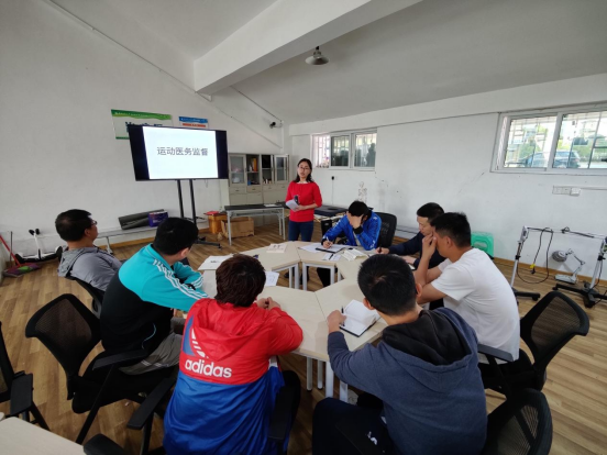 2022年4月13日中午12点30分,运动康复教研室在运动康复中心开展了集体备课,主备人为王兰老师,备课内容为《运动医务监督》的课程设置。