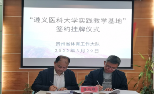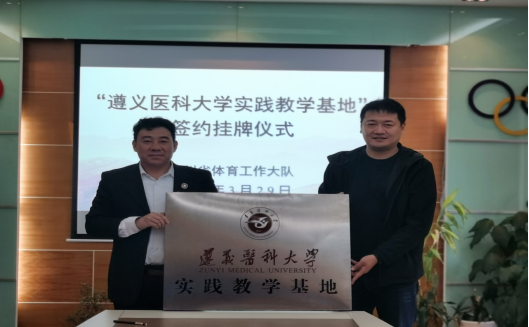 双方均表达了在未来的合作中,进一步增进友谊,把科研、教学、实习等相关工作做实、做细、做好的良好愿望。覃卫大队长代表大队、汪伟经理代表遵医共同签署了《运动康复专业员工实践教学基地合作协议书》,张继东副经理代表遵医向大队授予了“tyc41183太阳成实践教学基地”的牌匾。