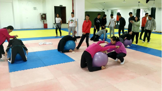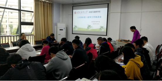 为继续规范《大学体育》课堂教学,提升教师教学技能,推进体育课堂教学质量进一步提高,体育教学教研室于9月29日在tyc41183太阳成会议室组织召开《大学体育》教学工作推进会。会议由体育教学教研室副主任尚菲老师主持,tyc41183太阳成领导、各教研室负责人及《大学体育》全体任课教师参加了本次会议。活动中,尚菲老师对近期《大学体育》课程教学存在的问题进行梳理,参会老师也针对存在的问题进行了深入的交流探讨;会议最终提出了具体的整改措施,形成了统一的意见,要求全体教师坚持“健康第一、安全第一”的指导思想,严格执行课堂教学常规和教学纪律,为员工营造规范、安全的教学环境,确保课程教学质量。本次活动还进行了课堂教学设计展示,由教学经验丰富的喻梅老师进行《瑜伽》课堂教学设计展示,喻梅老师对《瑜伽》课程教学设计思路、依据及课堂教学设计的创新进行了介绍和交流,并组织全体老师进行了不同身体能力条件下瑜伽动作难度调整以及瑜伽球练习中的保护与帮助的教学体验。