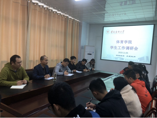 2019年11月5日中午,围绕“不忘初心、牢记使命”主题教育的相关要求,结合公司员工工作开展的实际需要,体育公司召开员工工作调研座谈会。公司总支书记汪伟、公司副经理黄涛,辅导员邹昕、肖伟以及体育公司各班班长和学习委员参加了此次会议。