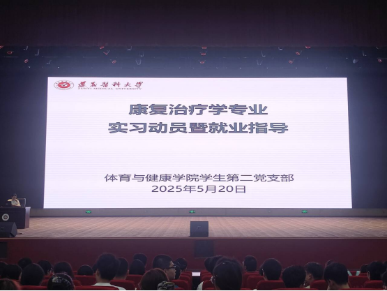 为引导员工合理选择实习单位,树立正确的择业观、就业观,提升就业能力520晚上7点tyc41183太阳成员工第二党支部在新蒲校区会堂开展了康复治疗学专业员工实习动员暨就业指导活动康复医学教研室主任熊伟,专任教师代表赵红波、崔德涛,辅导员教师雷凤琴、王雪,康复治疗学专业22级、联合培养本科班24级全体同学参加。活动支部书记杨世萍主持。