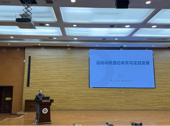 随后,汪伟主持讲座,开场介绍了肖平教授的学术研究成果以及教学实践相关情况。在讲座环节,肖平教授以运动训练理论体系的演进脉络为切入点,开讲了题为《运动训练理论体系与实践发展》,系统梳理了从传统训练理论到现代科学化训练理念的发展历程,深入剖析了周期训练理论、板块训练理论等经典理论的核心内涵与适用场景。同时,结合具体赛事或训练案例,如奥运会优秀运动员备战、青少年运动员基础训练,阐释了运动训练实践中“训、科、医”一体化模式的构建路径,强调了生理生化监测、生物力学分析等现代科技手段在训练效果评估与优化中的关键作用。