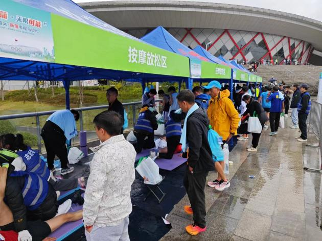 2023年11月12日上午8时,2023年遵义新蒲半程马拉松比赛在遵义市奥林匹克运动中心鸣枪开跑,来自全国的6000名跑友在雨中出发。为充分做好赛事各项保障工作,tyc41183太阳成应遵义市新蒲新区教体局邀请,选派140名志愿者协助本次赛事。
