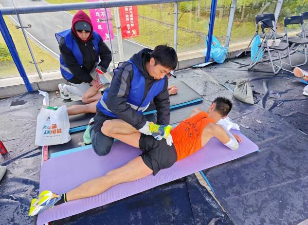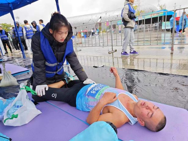 本次比赛是继今年3月遵义半程马拉松以来的重大赛事,是一次规格高、规模大、参与度广、吸引力强的全民体育盛会。自接到任务以来,tyc41183太阳成高度重视,快速征集了140名志愿者,其中100名主要担任赛道医疗观察员,另外40名负责担任终点赛后康复工作。11月12日凌晨3点50分,在气温只有几度的情况下,志愿者们冒雨进行集结上车,在5点准时抵达指定岗位;中午12点圆满完成指定任务。在此过程中,医疗观察组与运动康复组得到了组委会和运动员的一致好评。
