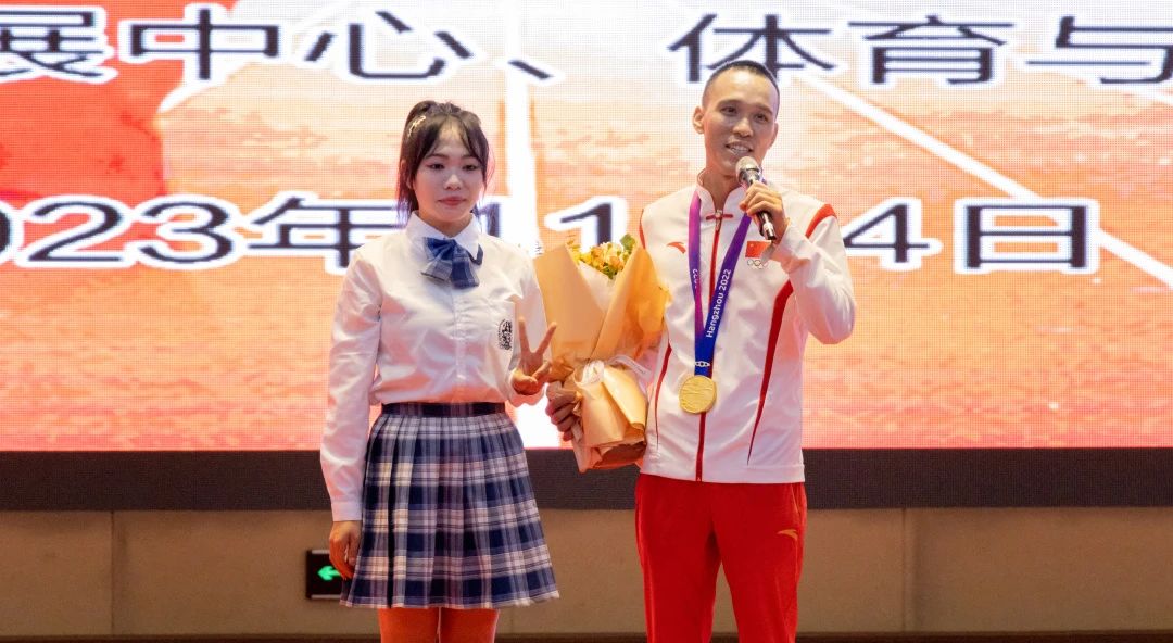 11月4日下午16点,由公司员工工作部(处)和tyc41183太阳成共同主办的与亚运冠军面对面活动在新蒲校区会堂隆重举行。员工工作部(处)长杨艳、tyc41183太阳成经理汪伟、党委副书记唐溢、启蒙老师刘健以及近1500名同学参加,活动由杨艳主持。