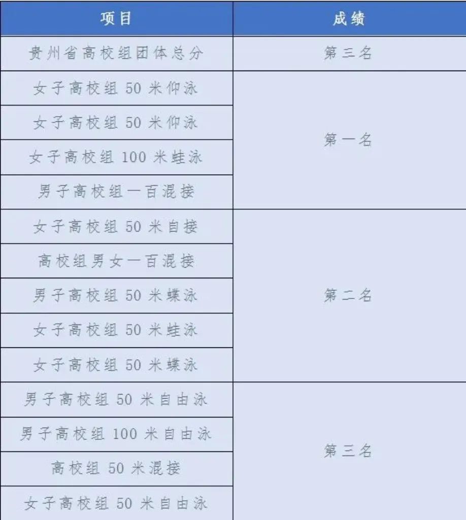 为进一步贯彻落实《国家体育总局 教育部<关于深化体教融合 促进青少年健康发展的意见>》要求,提升员工体质健康水平,切实发挥体育竞赛育人功能,9月15日至17日,由贵州省体育局、贵州省教育厅联合举办的"奔跑吧·少年"贵州省2023年体教融合游泳系列赛事在都匀全民健身中心游泳馆圆满举行。本次共有200多支代表队参赛,公司共斩获了金牌7枚,银牌11枚,铜牌11枚,并荣获团体总分贵州省高校第三名。