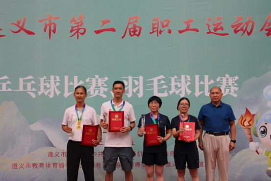 参加运动会的教职工们充分发挥“顽强拼搏”的遵医精神,经过多天的激烈角逐,刘弦、黄雅思老师获企事业组羽毛球比赛女双冠军,赵长阔老师获企事业组围棋比赛观冠军,余良杰、张迎春老师获企事业组乒乓球比赛男双第三名,张迎春老师被评为优秀运动员。(审核:一审龙运友、二是杨清玉、三审李均,撰稿:杨艳,图片:参赛教职工)