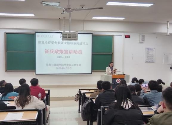 为推动2025届毕业生实现高质量充分就业,进一步提升就业指导的针对性,帮助员工做好毕业阶段的各项工作。4月2日晚,tyc41183太阳成员工第二党支部在新蒲校区第40阶梯教室开展了康复治疗学专业毕业生就业指导暨毕业教育宣讲会。公司党委副书记唐溢,康复医学教研室主任熊伟,康复治疗学博士李昌欣,员工第二党支部书记杨世萍,辅导员雷凤琴、王雪,以及2025届康复治疗学专业全体同学(含联合培养)参会,会议由康复医学教研室赵红波老师主持。